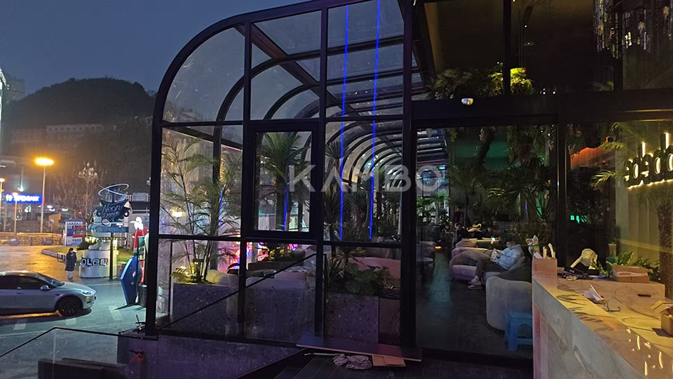 当前位置:首页 -- 案例展示 -- 贵阳酒吧餐厅弧形移动阳光房